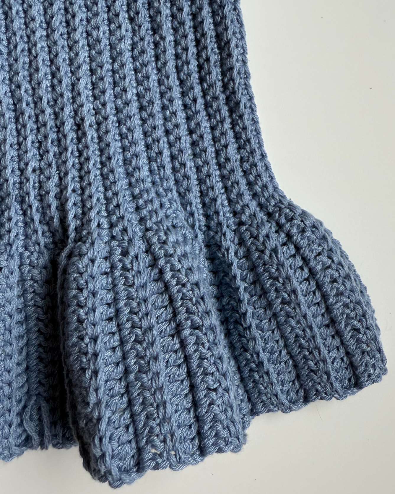Worked in back-loop-only single and double crochet, the top creates soft ribbing that gently hugs your shape. Clear instructions let you customize length, width, underbust placement, and flare for a perfect, personalized fit.